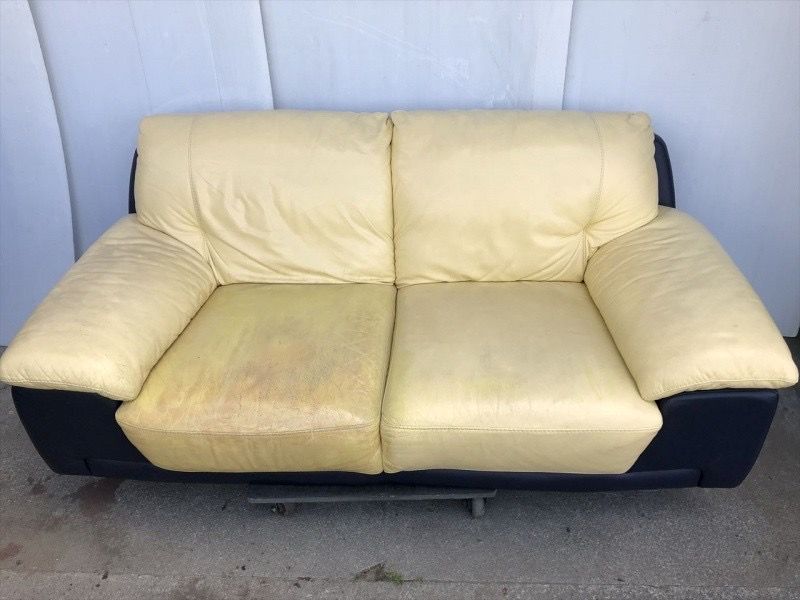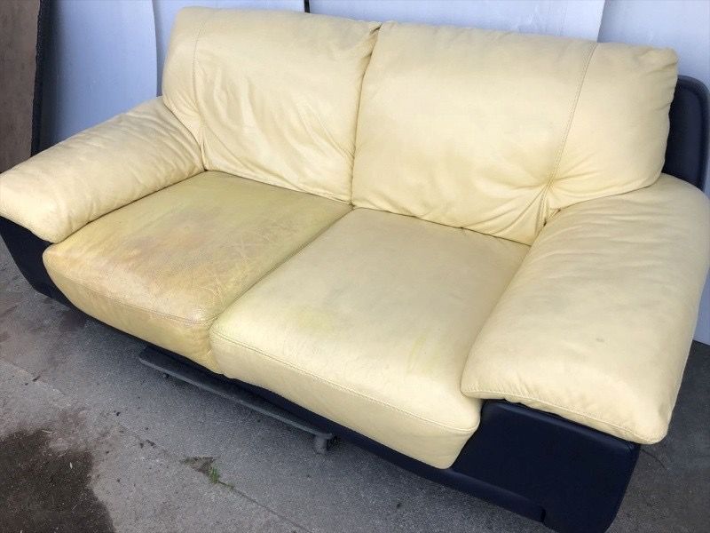 *本革ソファー* 全体染め直し、ひび割れ補修