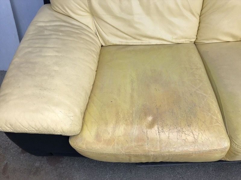 「ひび割れが気になる」とご相談いただいたこちらのソファーです。