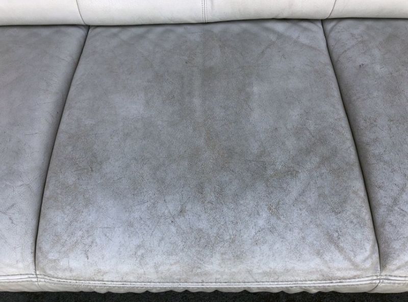 長く愛用されて、ひび割れや変色、表面の乾燥と剥離などなど…かなり使用感が出ています。